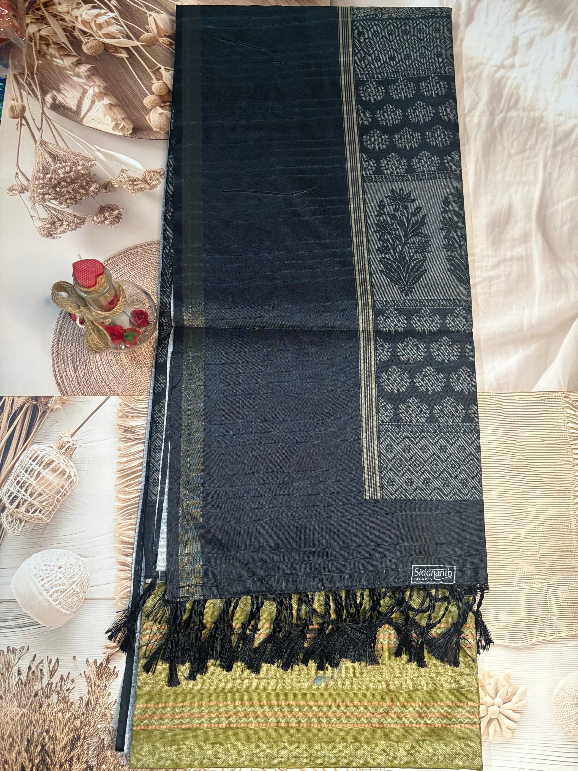 Drape yourself in effortless elegance with this premium cotton saree, designed for women who love both comfort and style. Crafted from soft, breathable cotton, this saree is perfect for all-day wear while still giving a refined, graceful look. The attached tassels along the pallu add a playful yet sophisticated charm, making it versatile for office wear, casual gatherings, or festive occasions. A timeless choice that blends simplicity with subtle designer detailing.